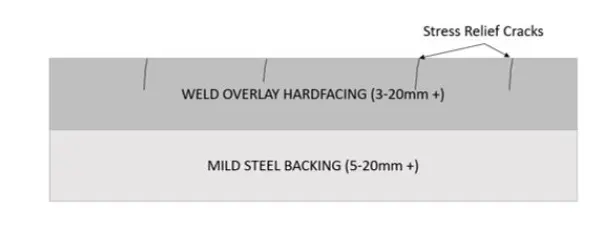 | Isojen materiaalien isku, helppo muodonmuutos tai halkeilu | 1. Kulutusta kestävän kerroksen sitkeys2. Alustan vetolujuus3. Seoskerroksen ja alustan välinen sidoslujuus | 1. Erittäin sitkeä alusta 2. Vahva ja sitkeä sidottu kulutusta kestävä kerros | Hitsaus, tulppahitsaus, taivutus (arvioitava) |