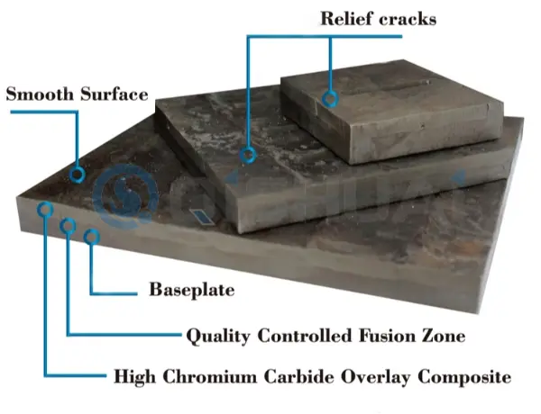 | Voimakasta materiaalin hankausta ja nopeaa kulumista | 1. Kulutusta kestävän kerroksen kovuus (HRC)2. Karbidin tyyppi ja jakelu | 1. Korkean kovuuden seoskerros (HRC 60+)2. Tiheä ja yhtenäinen kulutusta kestävä rakenne | Leikkaus, hitsaus, pulttikiinnitys |